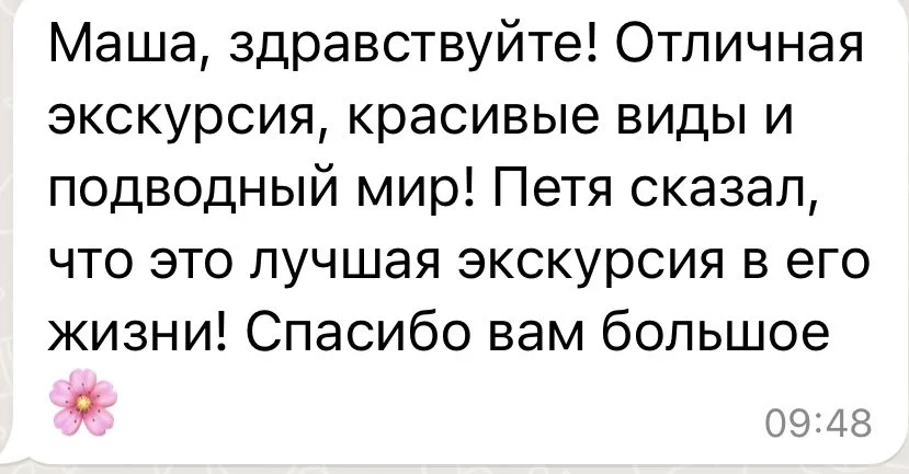 “Спустя 7 лет я опять здесь и опять благодаря сотрудничеству с Машей, которая организовала нам это путешествие. Все четко, здорово, пунктуально. И посмотрите, как тут прекрасно”